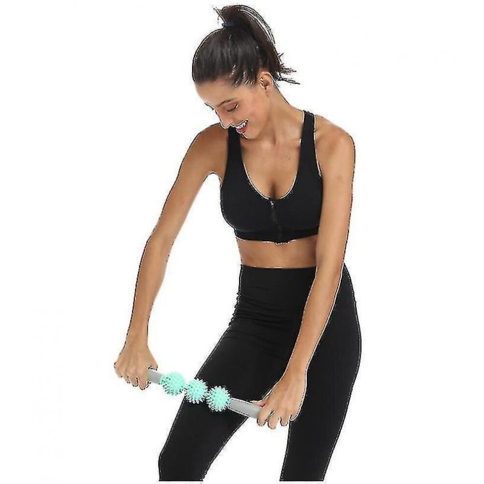 3 Balls Green Back And Neck Massager,massage Stick Hedgehog Ball, Relax Muscle Fitness Exercise