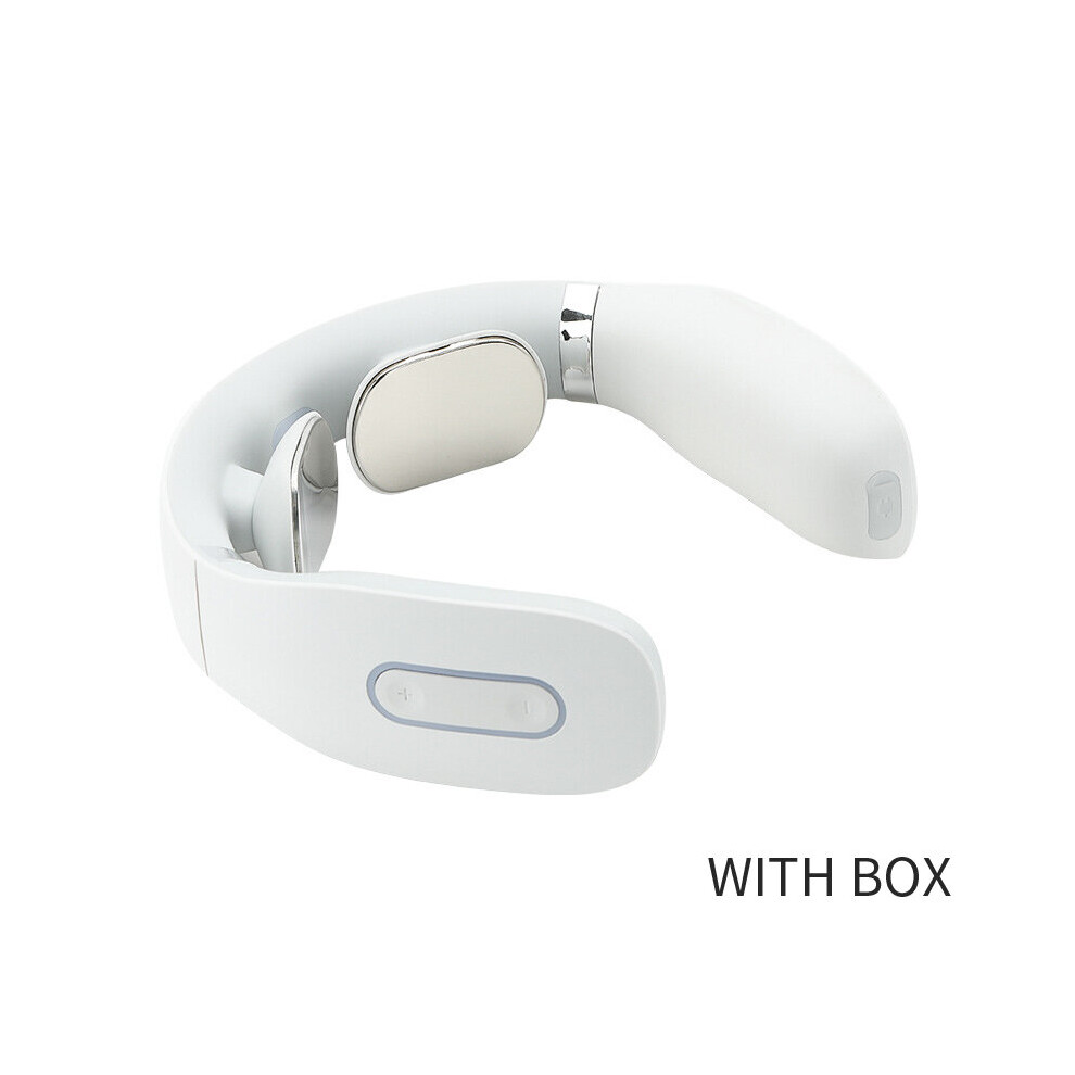 (a-2pcs White with Box) 2pcs Rechargeable EMS TENS Cervical Massager Back and Neck Massager Pulse 3d Heating Shoulder Massage Tools