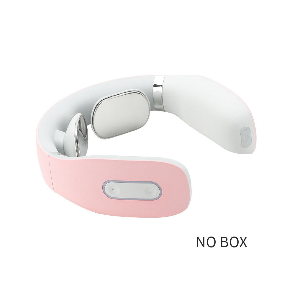 (a-NO BOX PINK) Electric Back and Neck Pulse Massager with Voice Therapy Massage Voice Broadcast echargeable Heating Function Neck Massager