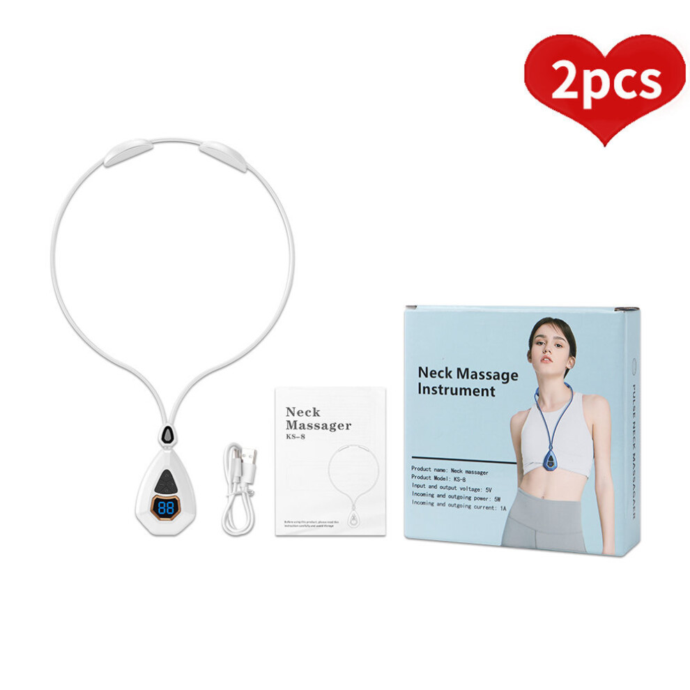 (a-2pcs White No Box) 2pcs Rechargeable EMS TENS Cervical Massager Back and Neck Massager Pulse 3d Heating Shoulder Massage Tools