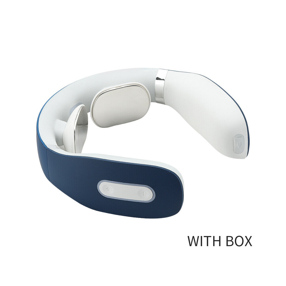 (a-2pcs Blue with Box) 2pcs Rechargeable EMS TENS Cervical Massager Back and Neck Massager Pulse 3d Heating Shoulder Massage Tools