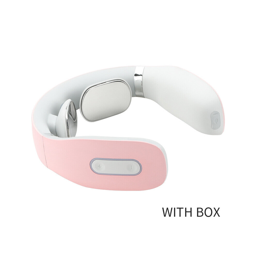 (a-WITH BOX PINK) Electric Back and Neck Pulse Massager with Voice Therapy Massage Voice Broadcast echargeable Heating Function Neck Massager