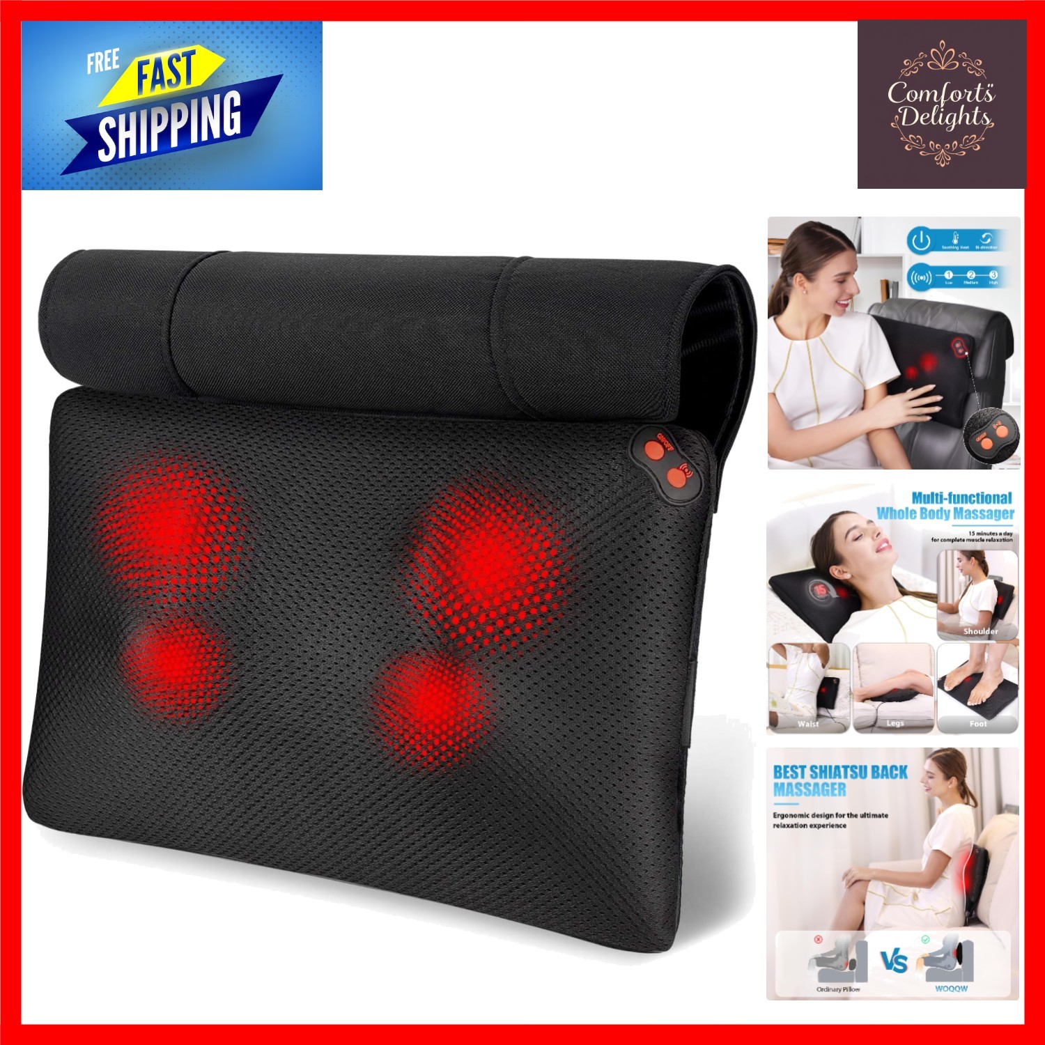 Comfort Supplies Back Massager, Neck Massage, Shiatsu Pillow with Heat, Deep Tissue Kneading Massager for Neck, Back, Shoulder, Legs, Electric, Muscle Pain Relax, Gifts for Women Men Mum Dad Him Her