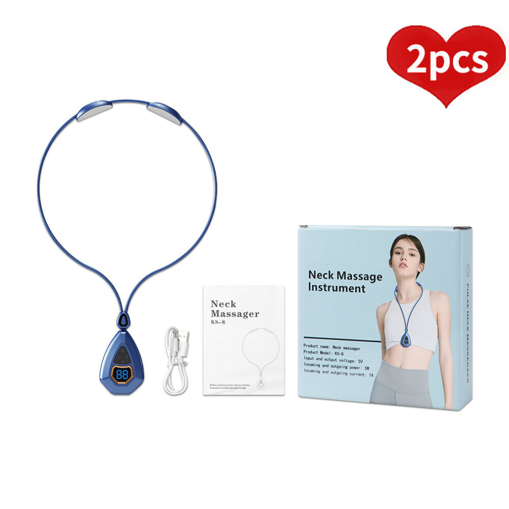 (a-2pcs Blue No Box) 2pcs Rechargeable EMS TENS Cervical Massager Back and Neck Massager Pulse 3d Heating Shoulder Massage Tools