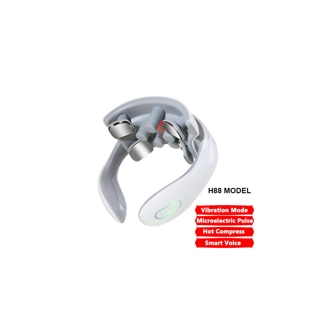 (a-NO BOX WHITE) Electric Back and Neck Pulse Massager with Voice Therapy Massage Voice Broadcast echargeable Heating Function Neck Massager