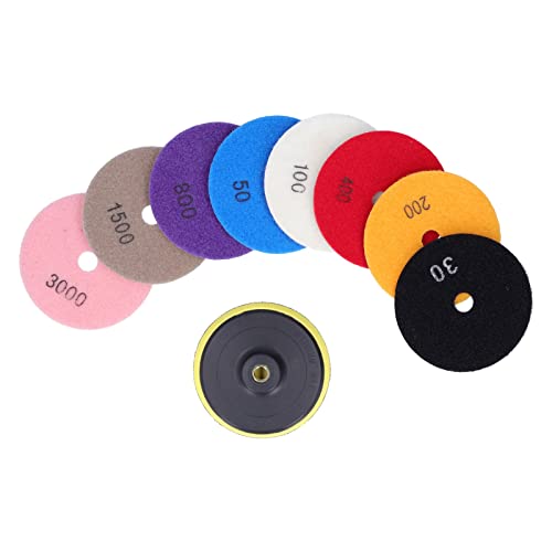Diamond Polishing Pad Set 9Pcs, Nylon Back with Suction Cup, 100mm Polishing Discs - Fast Heat Dissipation, Low Noise, Ideal for Stone and Ceramic