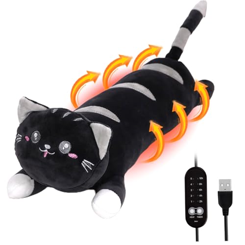Takingup Usb Heat Pad for Period 5 Heats Settings 5 Timer Modes Period Cramp Heat Pad 19.7x5.5 inches Cute Cat Stuffed Animal for Neck Back Pain Relax, Animal