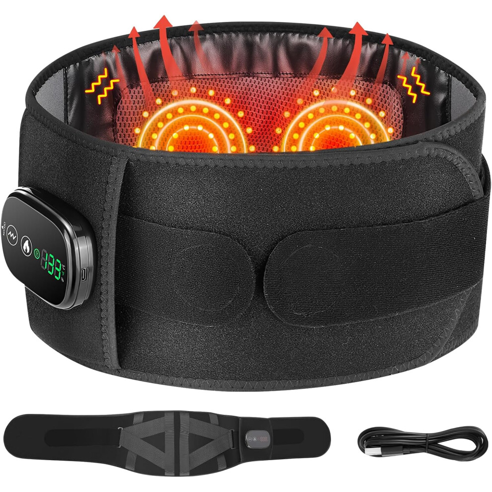 Comfytemp Cordless Heated Back with Massager, Rechargeable Back Heat Pad for Lower Back Soothing, Portable Heating Waist Wrap Belt, 9 Heat 5 Vibration 3 Intensity, APP Control, Gifts for Mom Dad