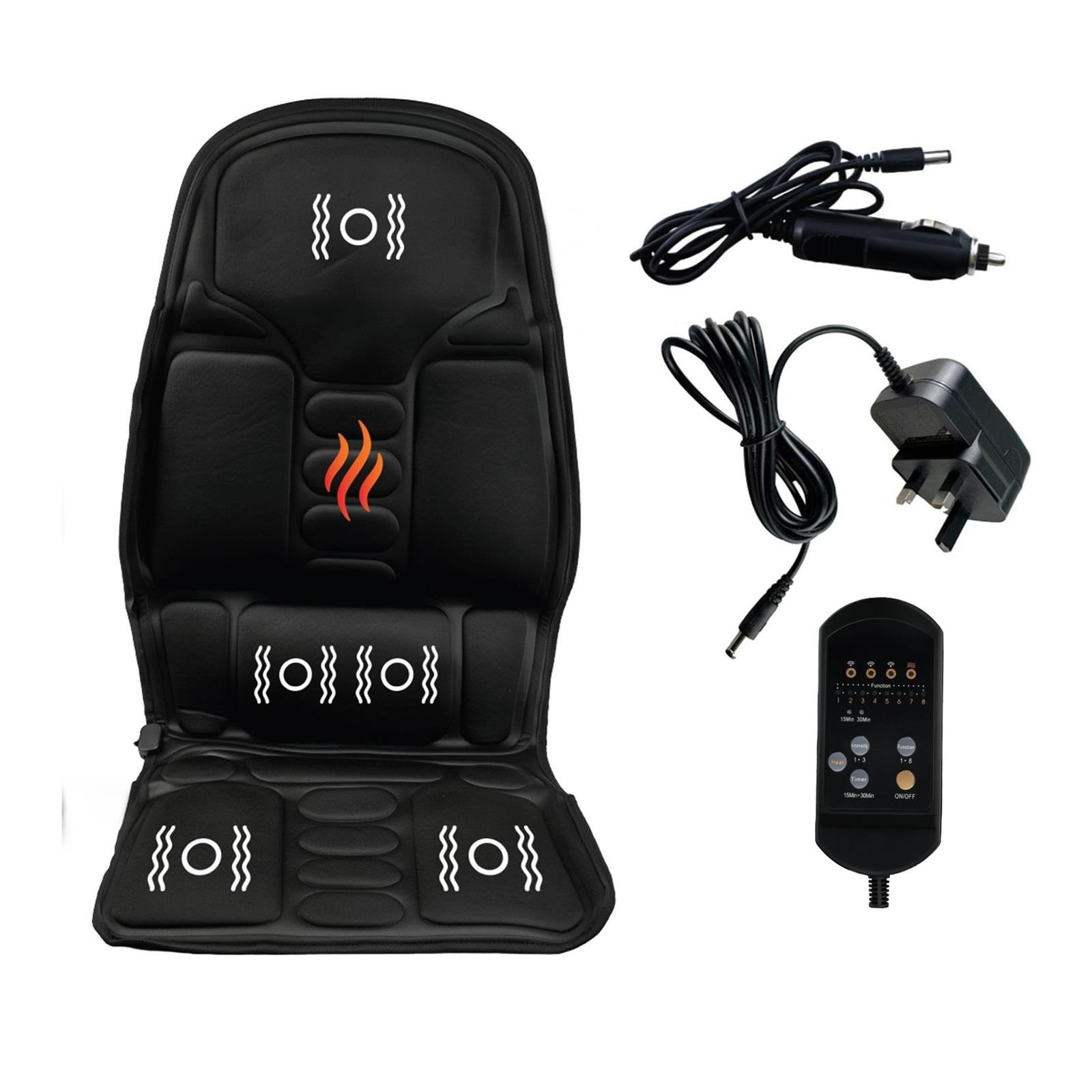 Heated Massage Seat Cushion 12V Car & Home 5 Motor Lumbar Back Heat Pad Electric