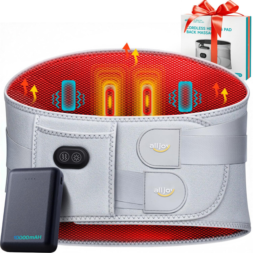 ALLJOY 170CM Heat Pads for Back Pain Relief, Back Heat Pad Electric with 10000mAh Power Supply, Cordless Back Massager with 3 Heat 3 Vibration, Christmas Gifts for Women Men Mom Dad
