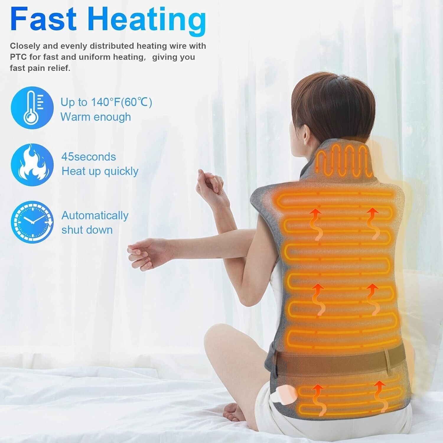 Therapeutic Electric Back Heat Pad Wrap for Muscle Tension Back Neck Pain Relief