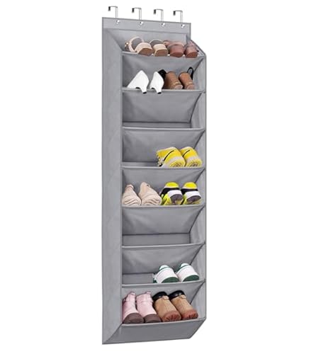 QUMENEY 8 Shelves Over Door Shoe Organizer Hanging Shoe Rack for Door Closet with Deep Pockets Back of Door Storage fits 24 Pairs Shoe Holder(Gray) (Gray)