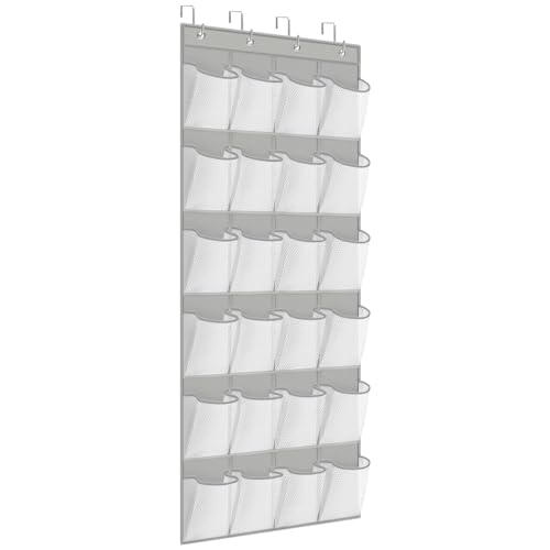 FENTEC Over Door Shoe Storage Organiser, 24 Large Mesh Pockets Over Door Shoe Organizer, Hanging Shoe Storage Door Shoe Rack, Sturdy Back of Door Storage with Hooks for Bedroom Bathroom Wardrobe