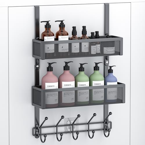 Kaiferty Over The Door Hooks Organizer,Coat Rack with 12 Hooks and 2 Mesh Baskets,Back of Door Storage Organizer for Bathroom,Bedroom,Kitchen,Office(Black)
