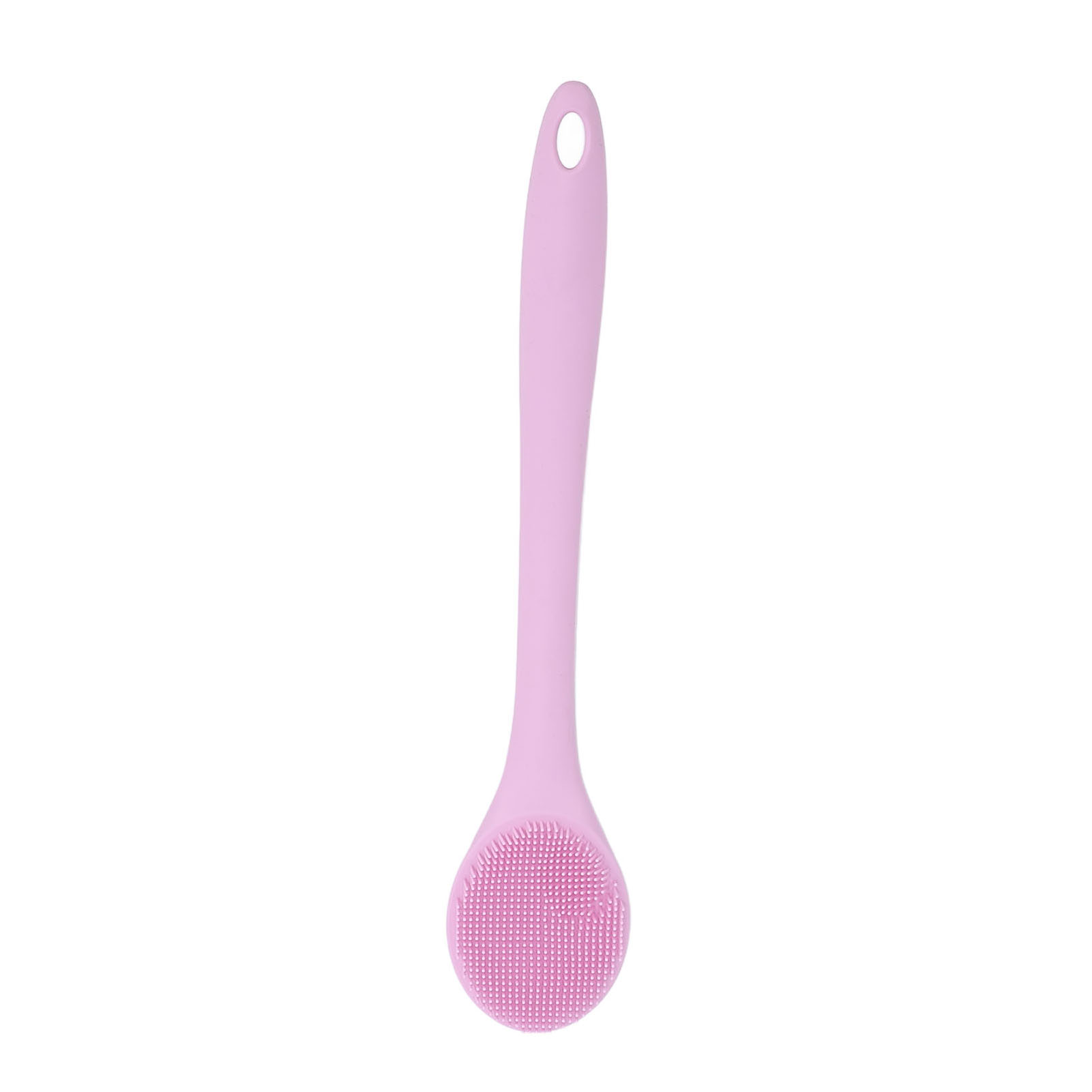 Silicone Back Scrubber for Shower Soft Bath Body Brush with Long Handle (Pink)