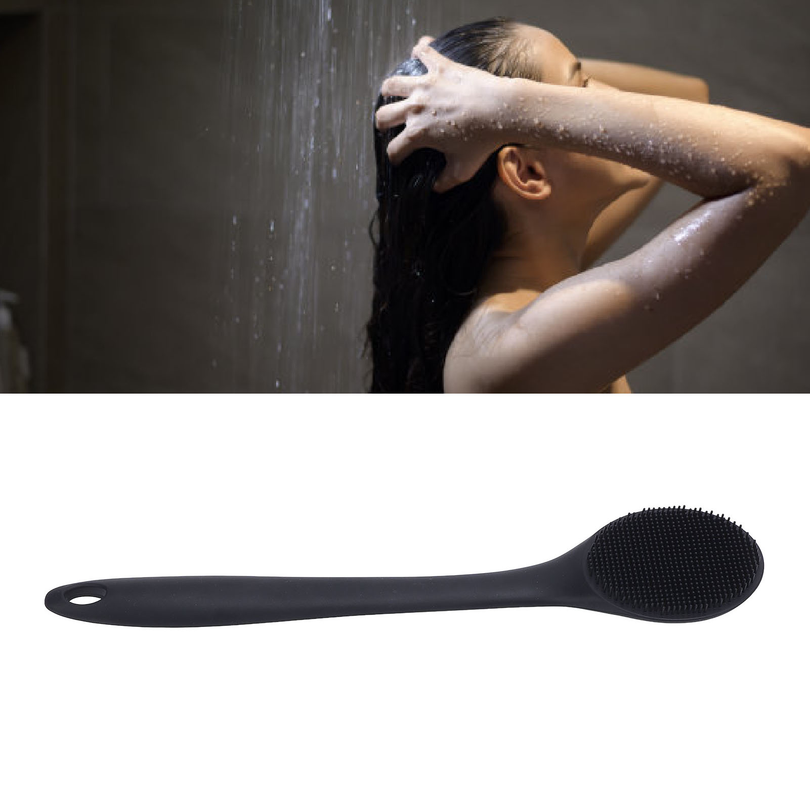 DNC Back Scrubber for Shower Soft Silicone Bath Body Brush with Long Black