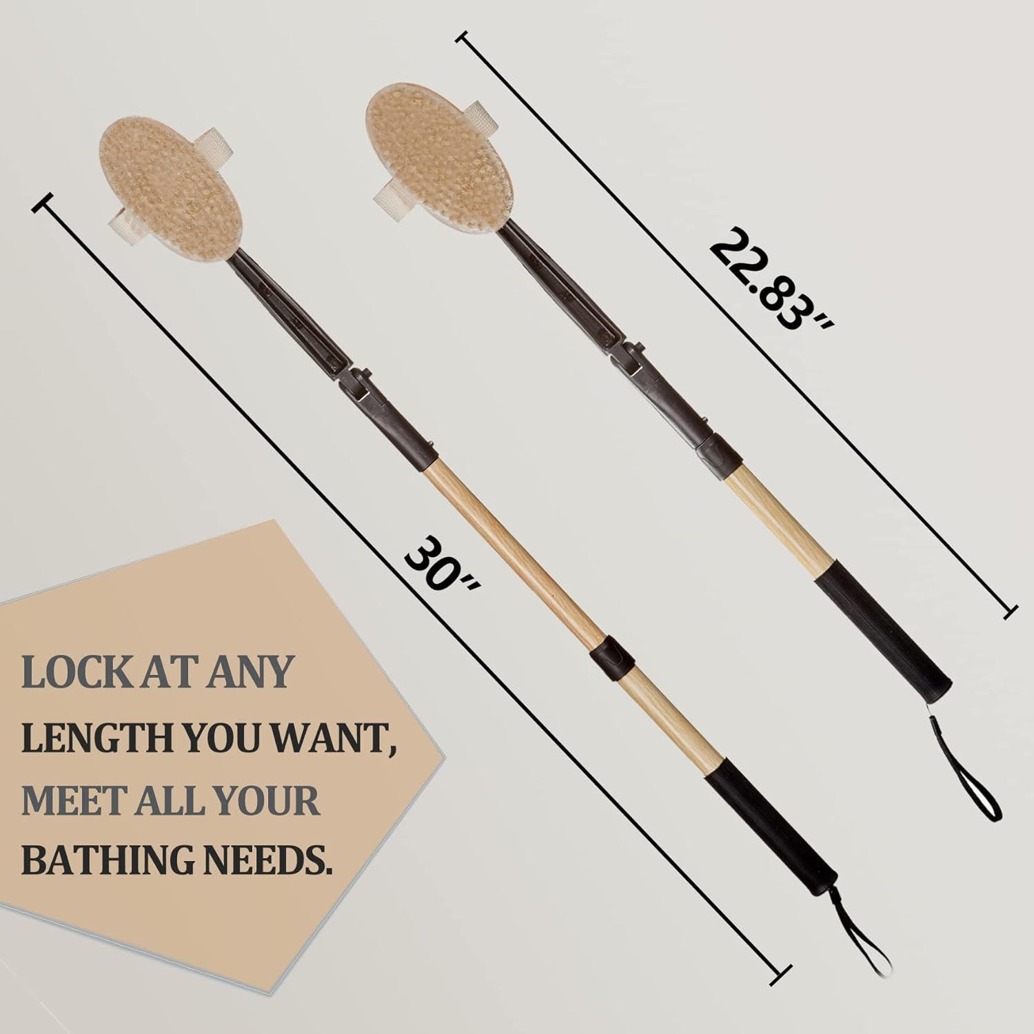 Wooden Back Scrubber for Shower with Long Handle, Dual-Sided Bath Brush Body Scr