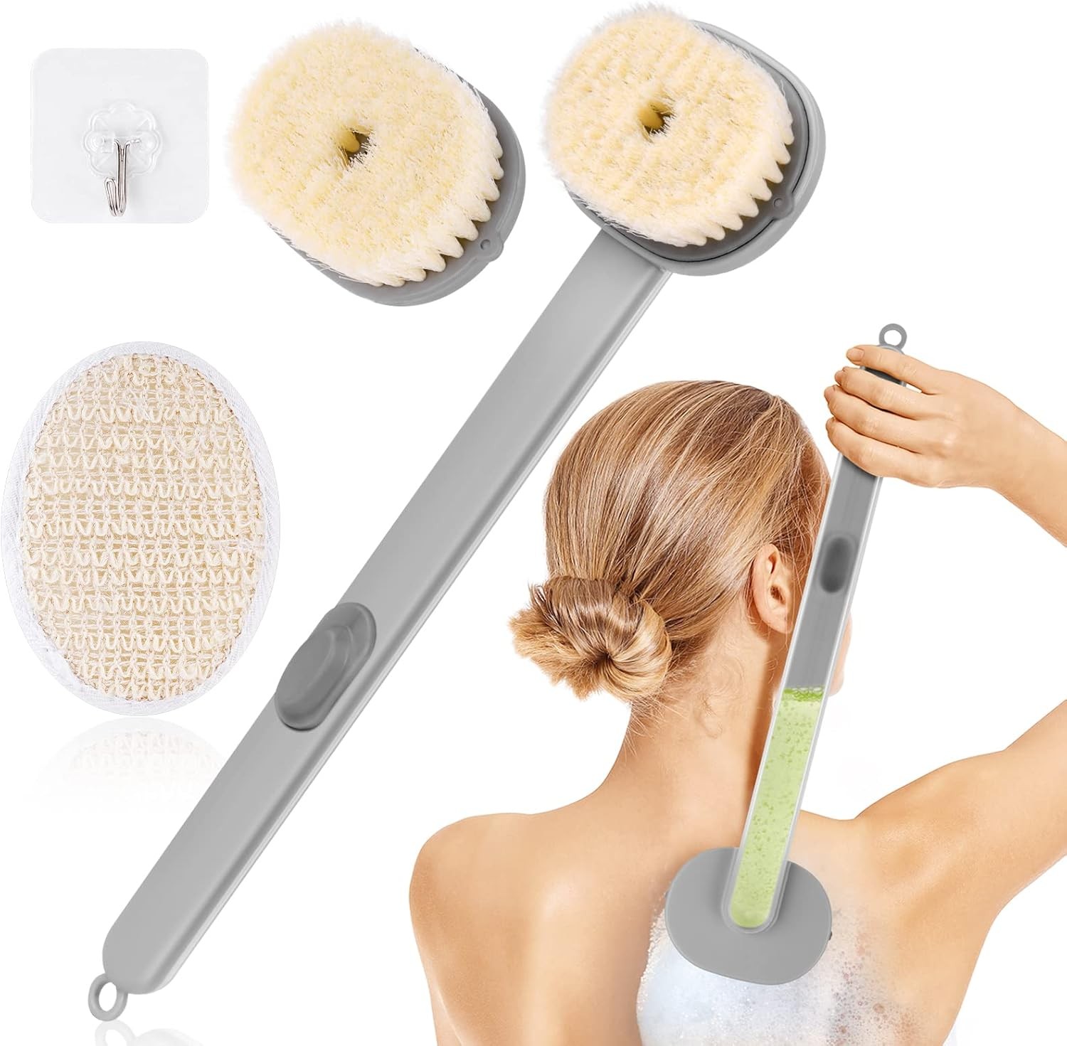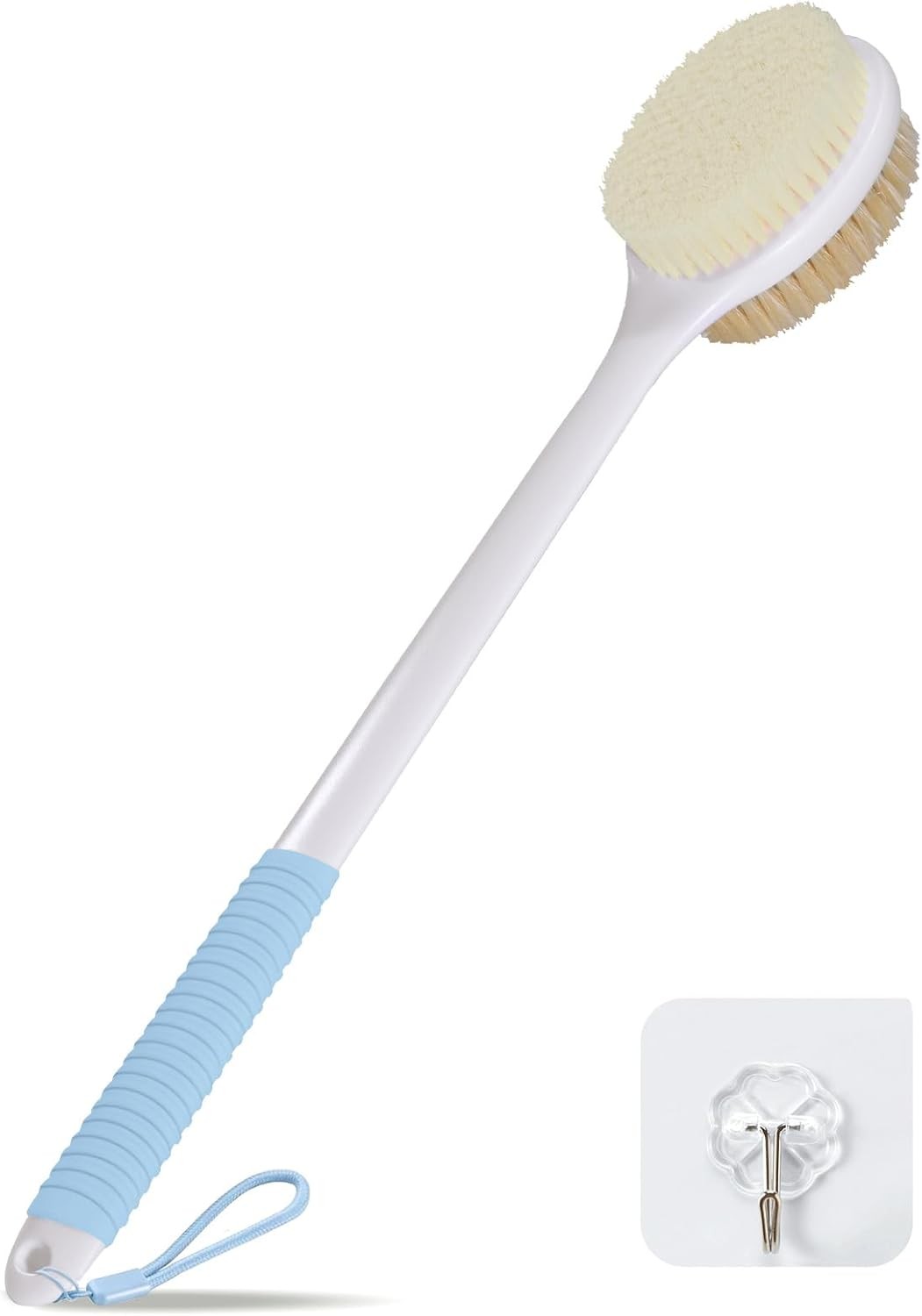 Back Scrubber for Shower Long Handled Dry Body Brush for Shower, Double-Sided L