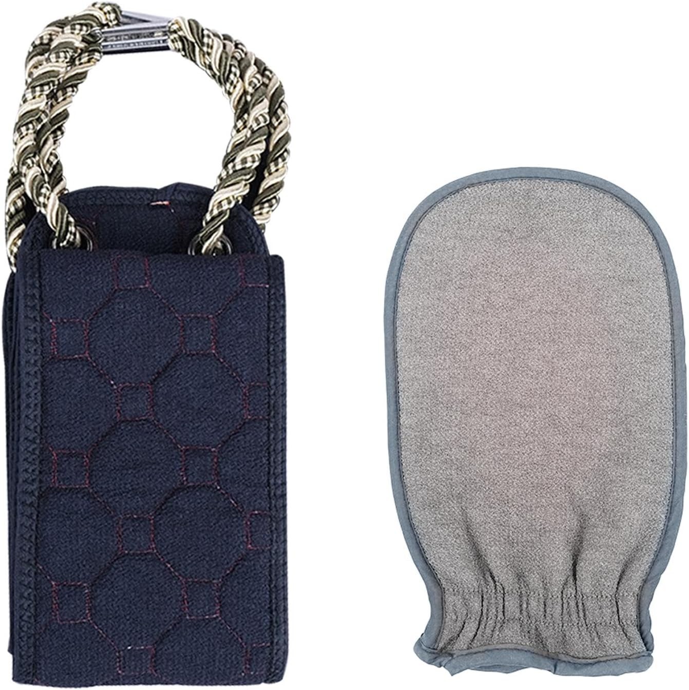 LOPHE Exfoliating Back Scrubber for Shower, 34 Inches Back Scrubber with Handles, Double Sided Body Exfoliator Bath Tool, Exfoliating Washcloth to Scrub Your Body Deeply for Men & Women (Dark Blue)