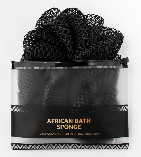 African Net Sponge Authentic - Exfoliating Body Scrubber Bath Sponge - Back Scrubber Washcloth for Shower with Travel Bag (Black)