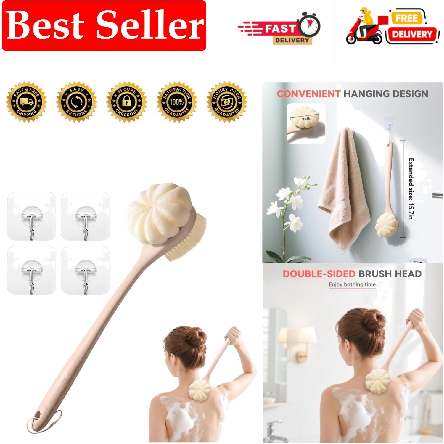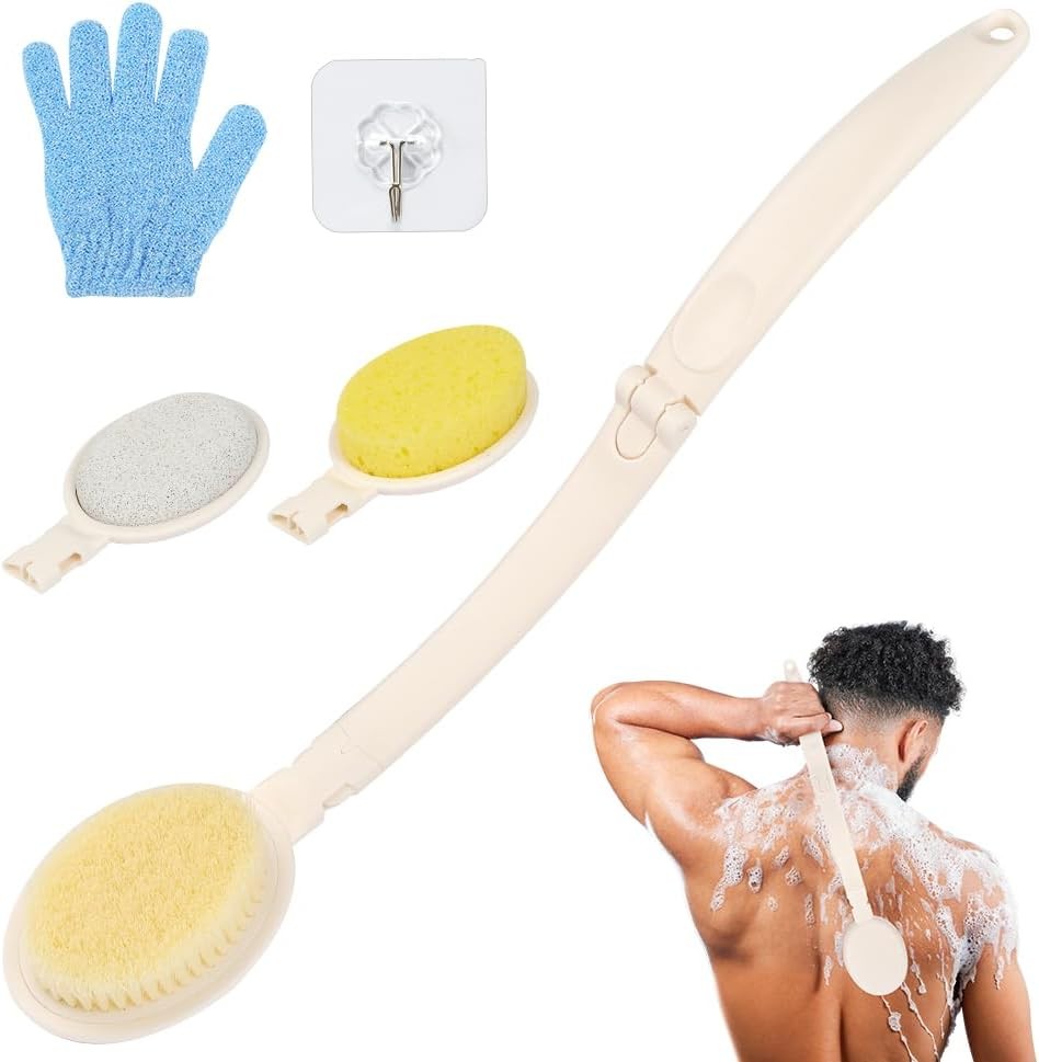 4 in 1 Back Scrubber for Shower, Long Handle Shower Back Scrubber with 3 Convert