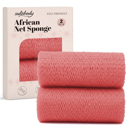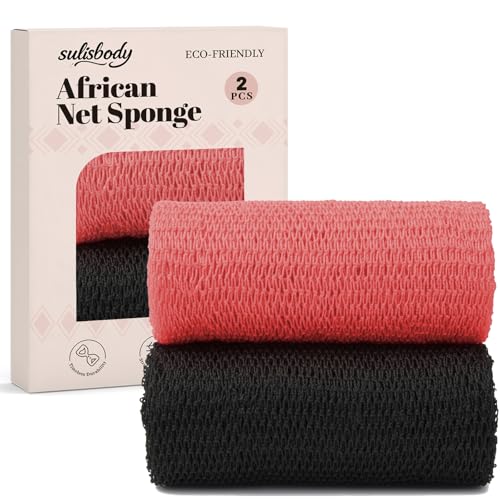 African Net Sponge Authentic - 2 Pieces Loofah Exfoliating Body Scrubber Bath Sponge - Back Scrubber Washcloth for Shower - Real African Scrub Exfoliator Body Care Bathing Accessories for Women