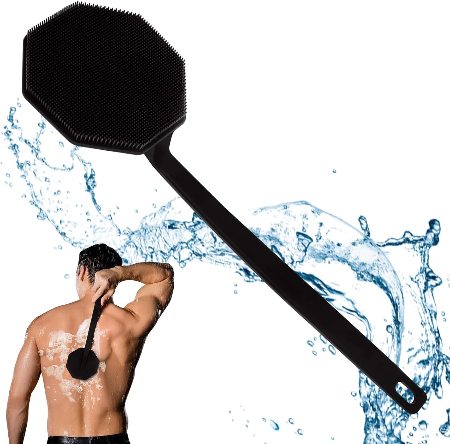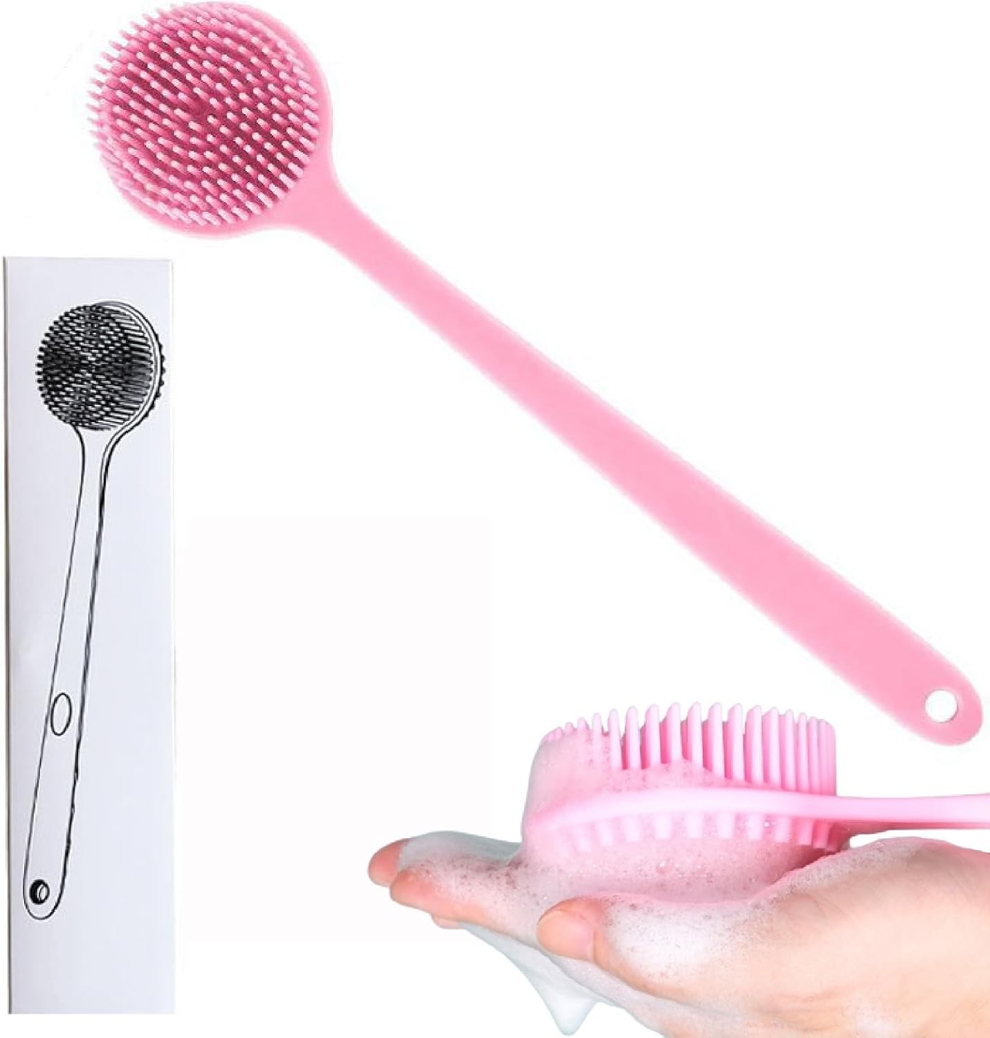 Silicone Back Scrubber for Shower, 17in Lengthen Long Handle Body Brush, Double