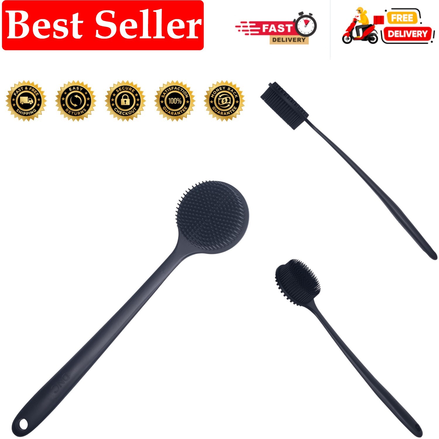 DNC Back Scrubber for Shower Soft Silicone Bath Body Brush with Long Handle