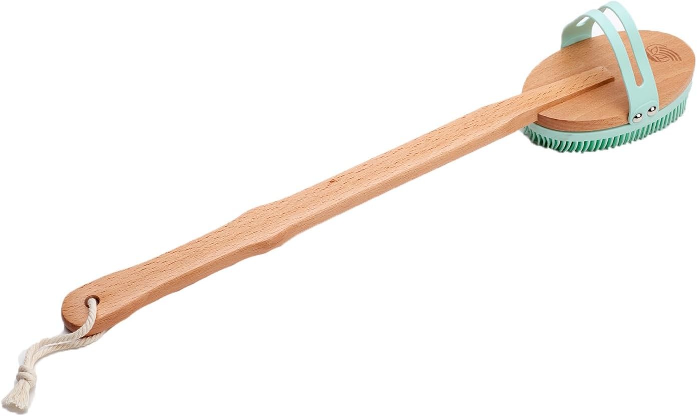Long Handle Silicone Back Scrubber For Shower & Bath With Detachable Beechwood