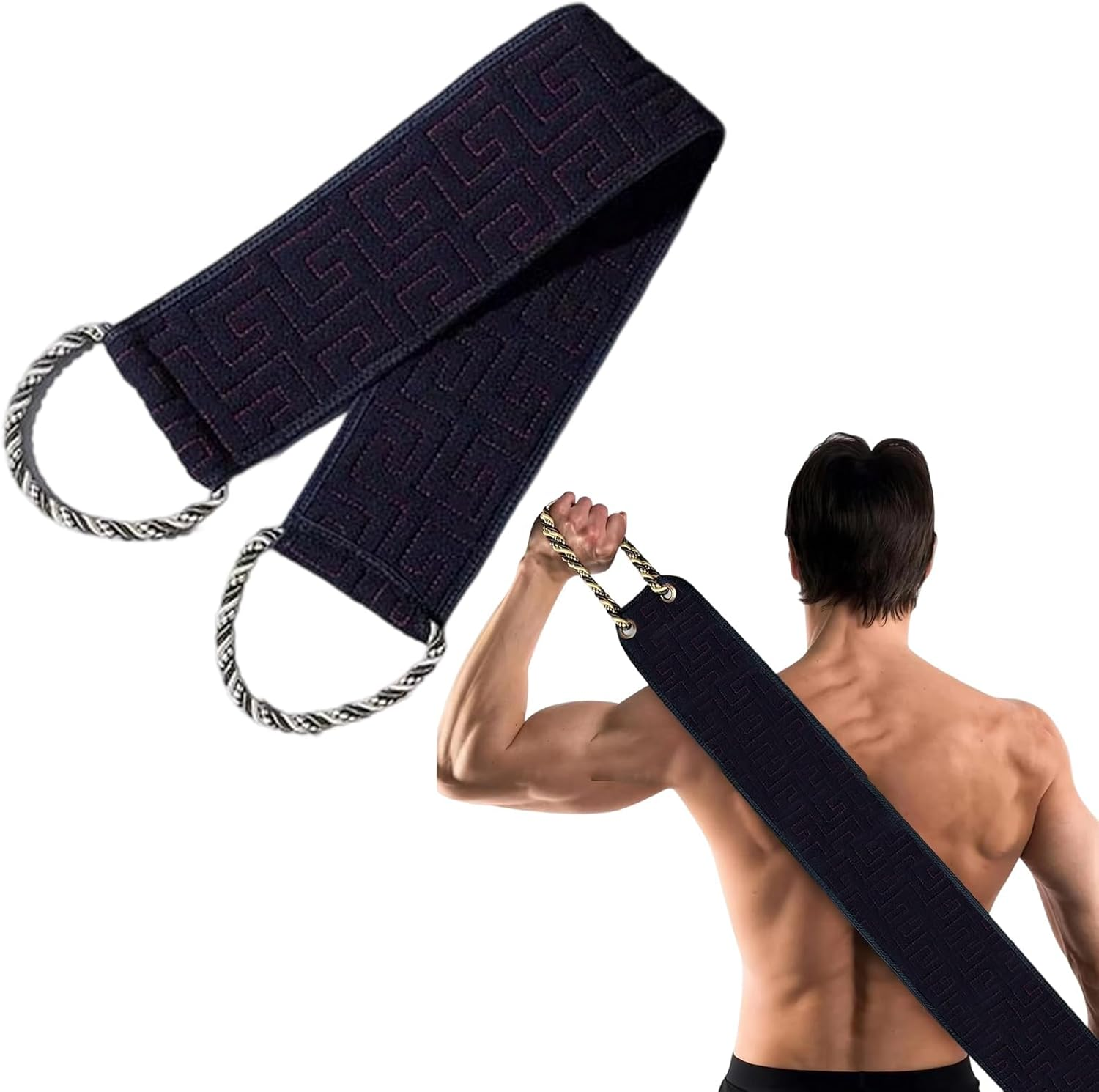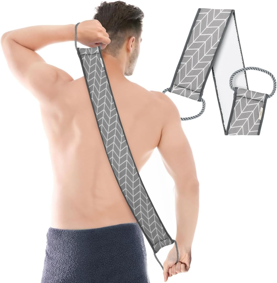 Back Scrubber for Shower, Double-Sided Back Exfoliating Washcloth with Handles,