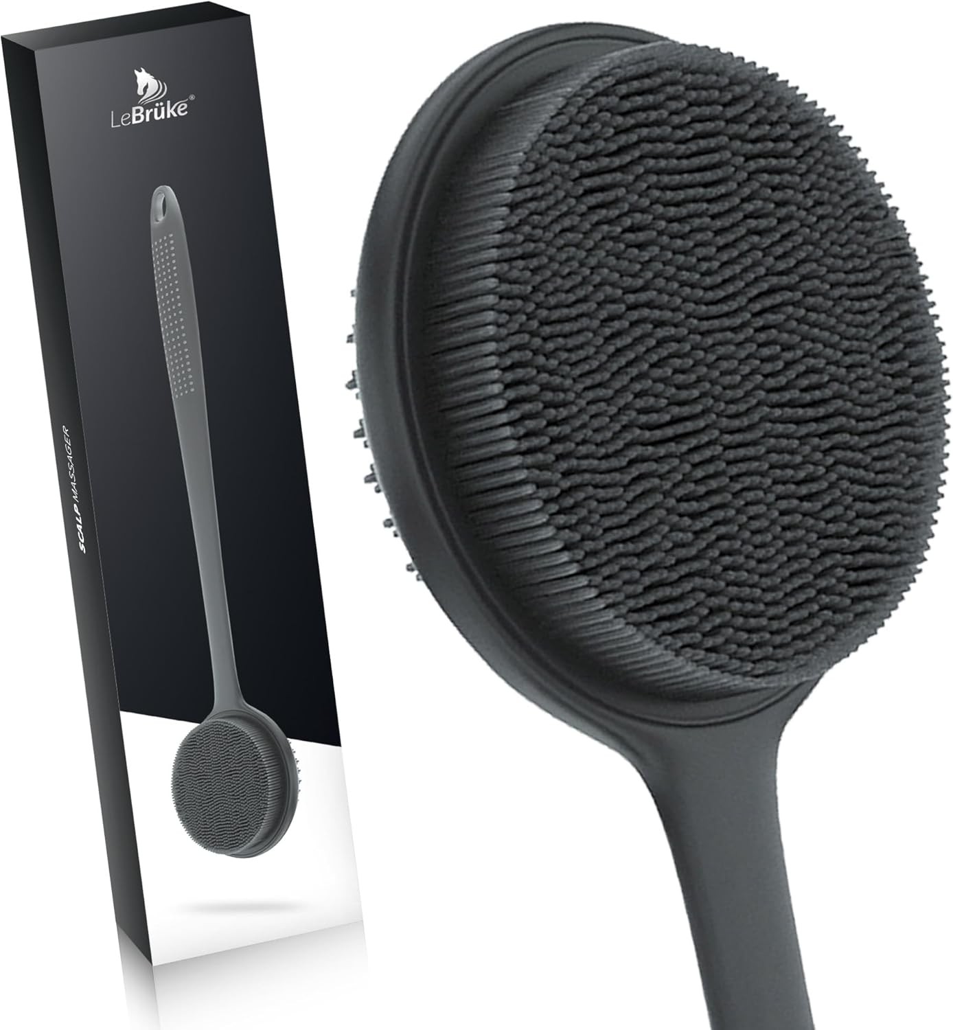 DNC Silicone Back Scrubber for Shower Bath Body Brush with Long Handle (Gray)