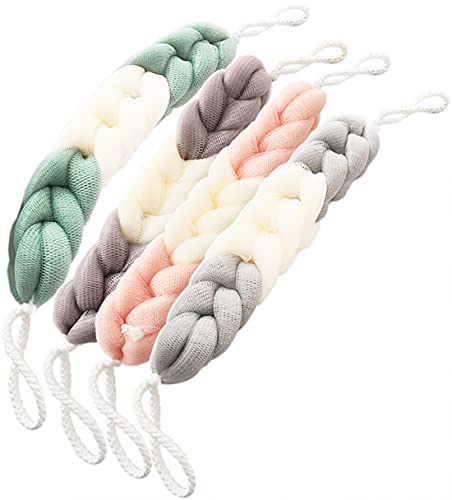 MURRI&MURRDI Back Scrubber Long Loofah for Shower, 4 Pcs Body Sponge Bath Loofah with Handles, Exfoliating Body Scrubber Mesh Sponge for Men & Women Bath Shower Loofah Sponge (4 Colors)