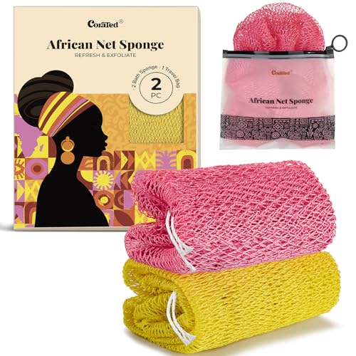 CORATED 2pcs African Exfoliating Net Sponge Set - Bath & Shower Net Sponges, Back Scrubber Washcloth for Shower, Beauty Skin Cleaning for Shower Spa Massage (Pink & Yellow)
