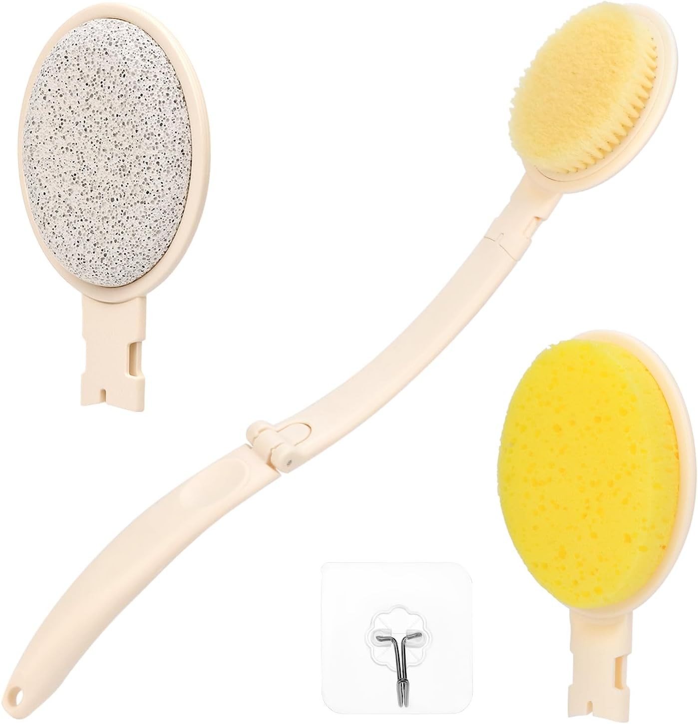LOPHE 4 in 1 Back Scrubber for Shower, Long Handle Shower Back Scrubber with 3
