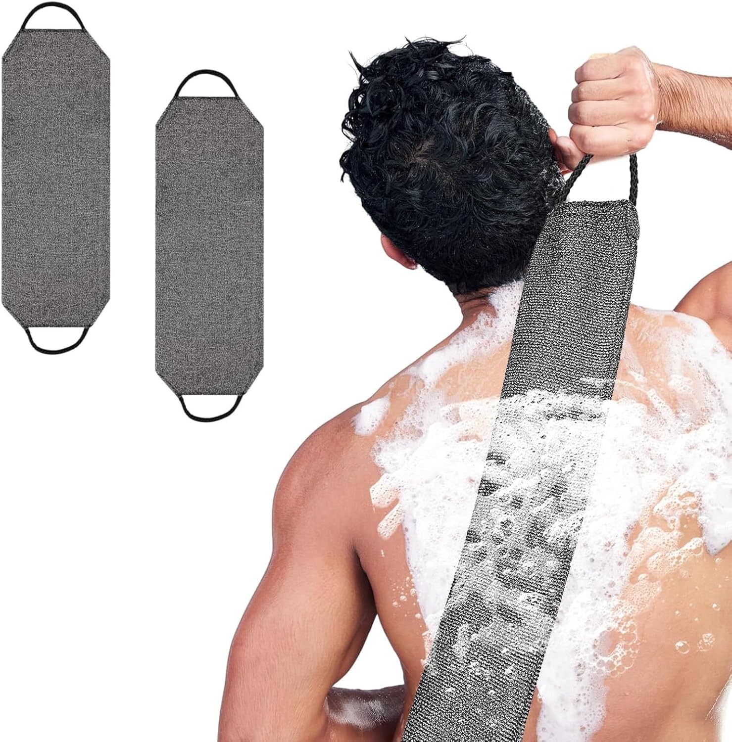 2PCS Exfoliating Shower Towel, Back Scrubber for Shower with Handles, Exfoliati