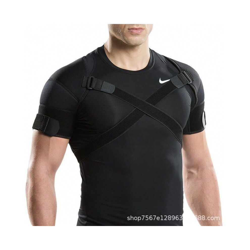 (Shoulder strap OPP bag, S/M) Sports Double Shoulder Support Back Brace Back Pain Double Bandage Cross Shoulder Straps