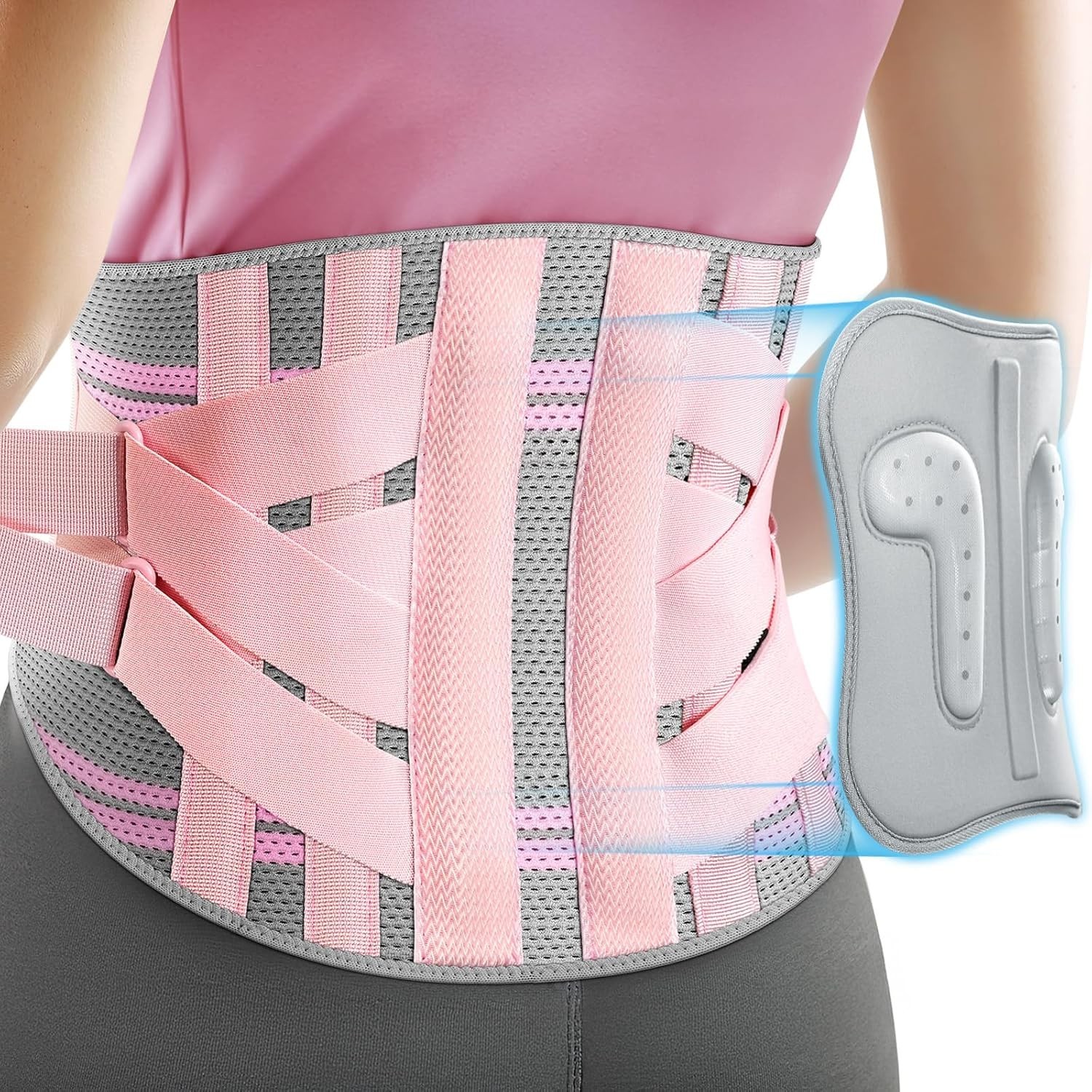 Rakiie Back Support Belt for Women, 9X Support Back Brace for Lower Back Pain, Ergonomic Back Support Brace with 3D Silicone Pad for Sciatica Scoliosis, Pink Size M (Waist: 85-100CM)