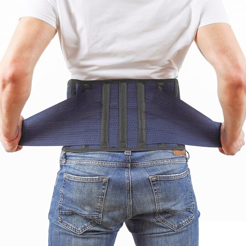 AVESTON Back Support Lower Back Brace for Back Pain Relief: Thin Breathable Rigid 6 ribs Adjustable Lumbar Support Belt for Men/Women Keeps Spine Straight and Safe – Belly size 46-52" XLarge