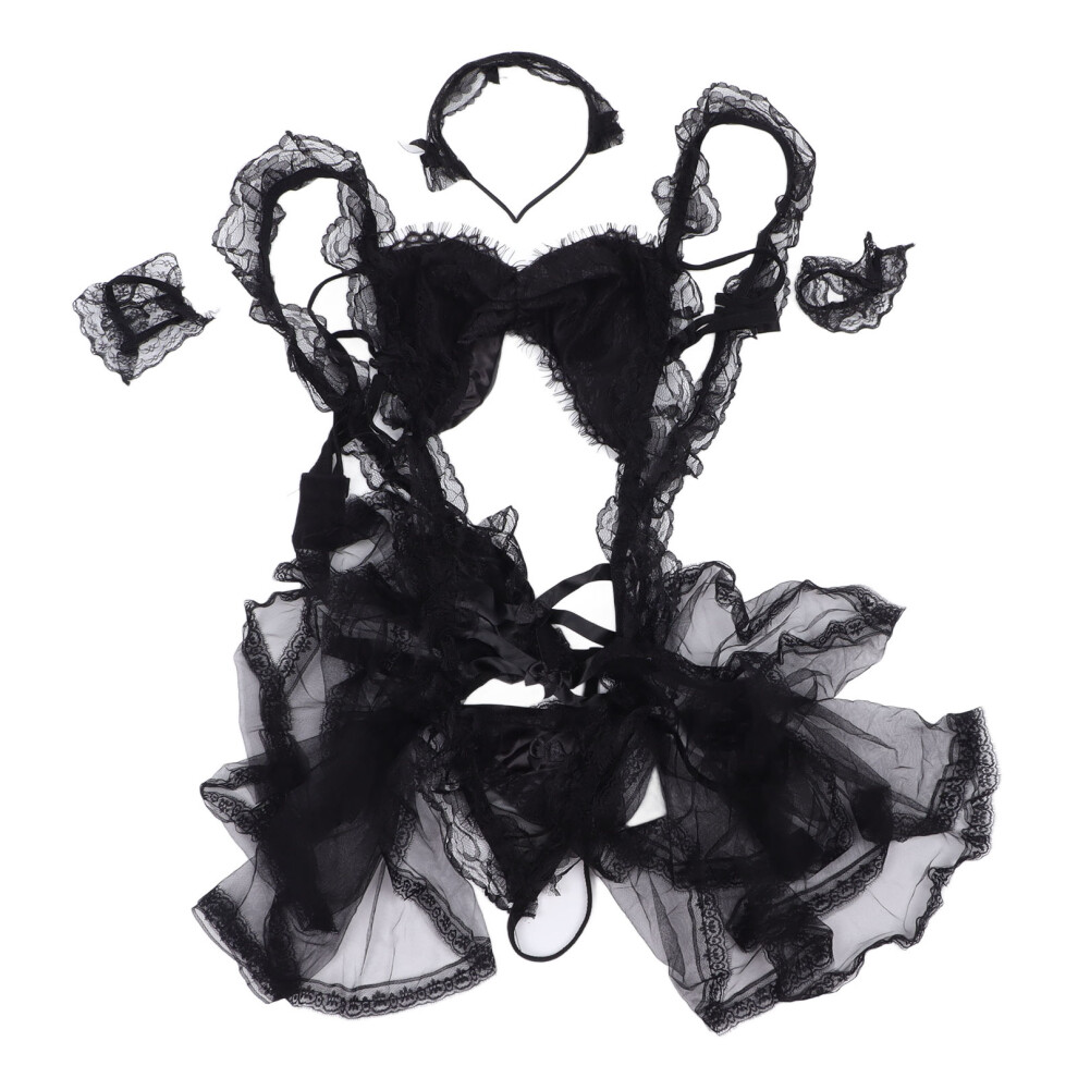 Abstract Retro Lace Pattern, Fashion and Unique Transparent Tulle Mini Skirt with Choker and Waist Decoration, Soft Strap Backless Bra Set, Lolita