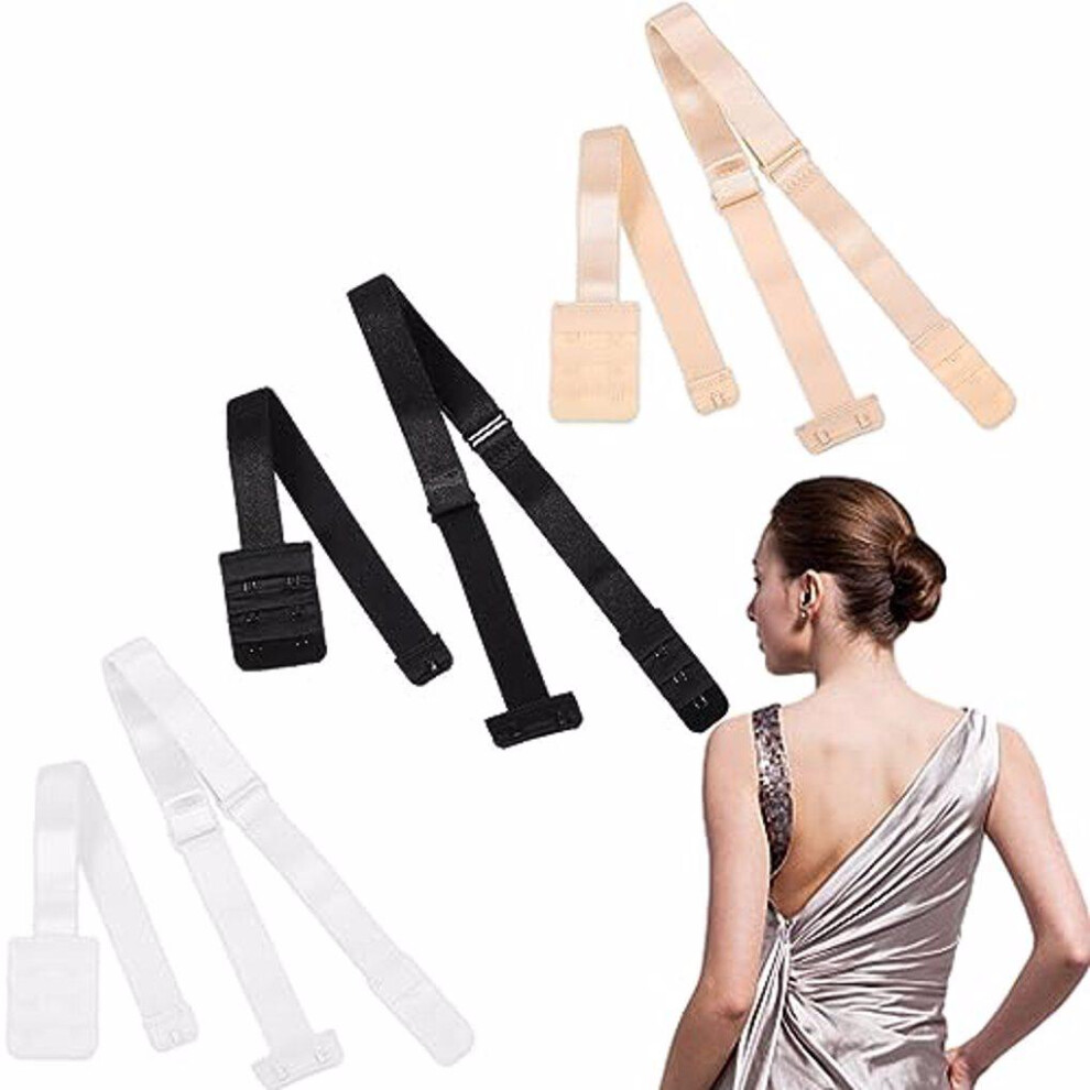 3 PCS Low Back Bra Strap, Low Back Adjustable Women's Bra Extenders Backless Bra Extenders, Bra Straps for Backless Dress for Ladies Girls Dress Wedding Party for Women - White, Black, Beige