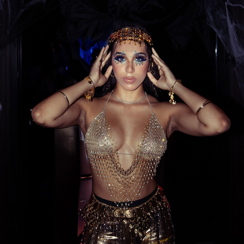 (One Size, Gold) Women's Rhinestone Lingerie Tops Cute Sleeveless Backless Spaghetti Strap Halter Bra Tanks