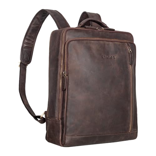 STILORD 'Kaleb' Laptop Backpack 15 Inch Leather Business Backpack Large Rucksack Bag with Trolley Attachment System Vintage Leather, Colour:Dark - Brown