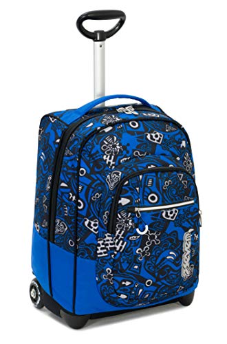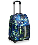 Invicta Rolling backpack, ABSTRACT JUNGLE, Wheeled Book Bag, 2 in 1, Backpack + Trolley, for Teen, Girls&Boys, For School, Sport, Free Time, Laptop Sleeve, Italian Design, blue