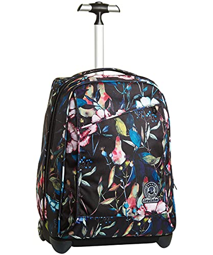 Invicta Rolling backpack, WILDFLOWERS, Wheeled Book Bag, 2 in 1, Backpack + Trolley, for Teen, Girls&Boys, For School, Sport, Free Time, Laptop Sleeve, Italian Design, black