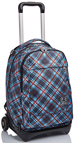Invicta Rolling backpack, NEW Tech TARTAN Wheeled Book Bag, 3 in 1, Detachable Backpack + Trolley, for Teen, Girls&Boys, For School, Sport, Free Time, Laptop Sleeve, Italian Design, blue
