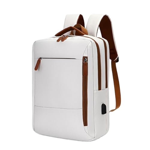 ZRHWSPD Backpack Ladies' Laptop Backpack Business Large Capacity Shoulder Bag College Student Leisure Travel Pure Color Simple Plaid Patte(Ivory)