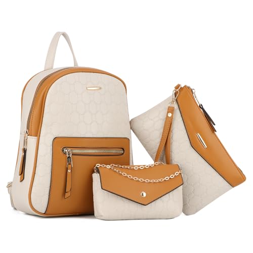 Syrads Women Backpack Purse PU Leather Backpack 3-PCS Cute Small Purse for Women Rucksack for Ladies Shoulder Bag,White