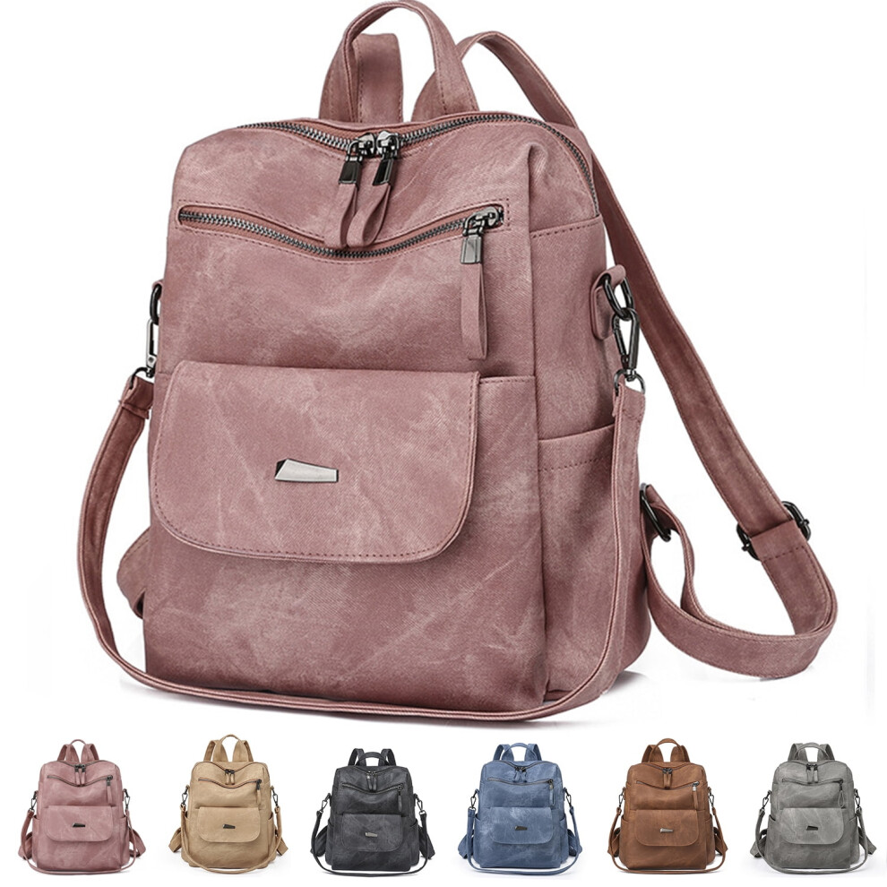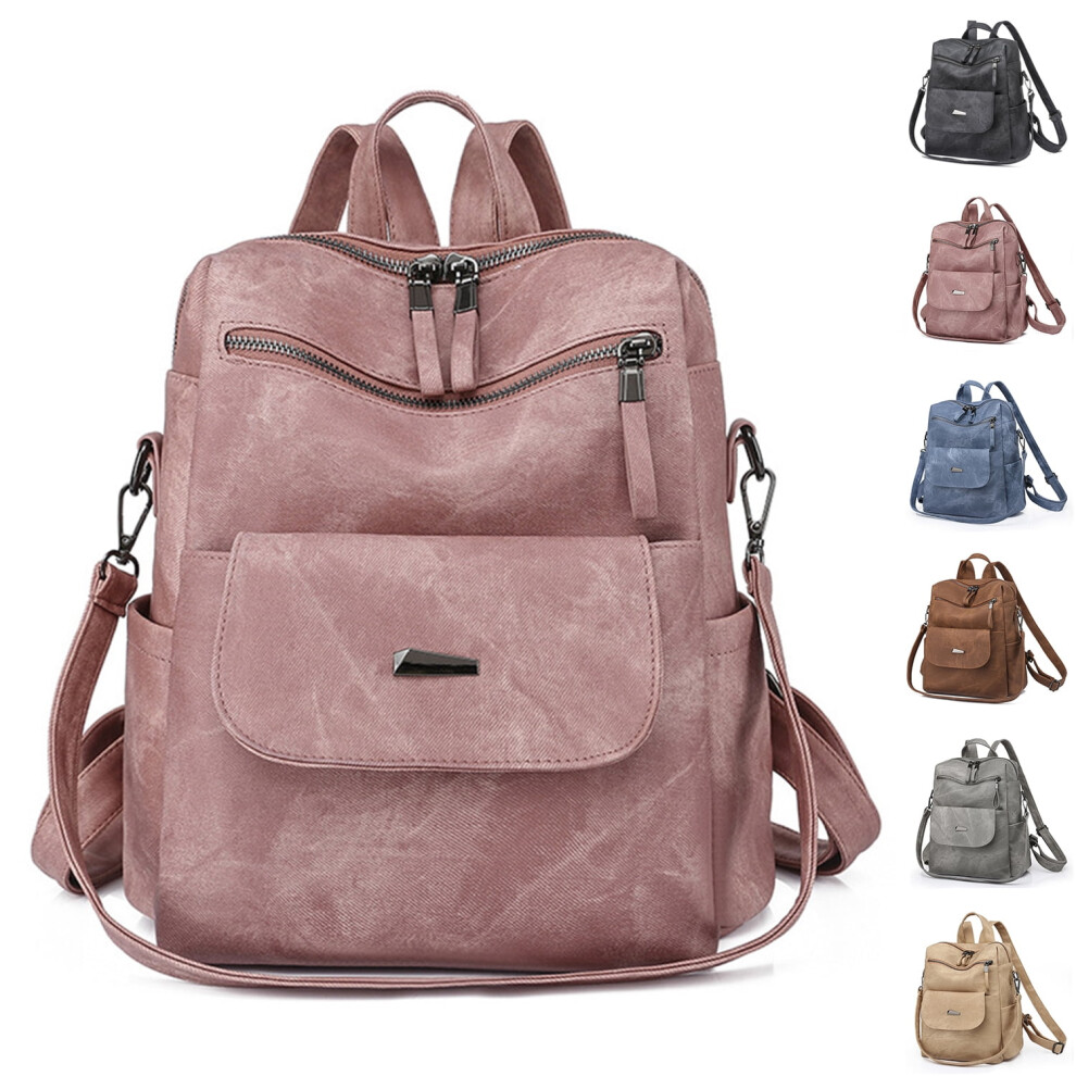 Medium Backpack Purse PU Leather Mini Backpack Travel Casual Ladies Shoulder Bag(Pink)
