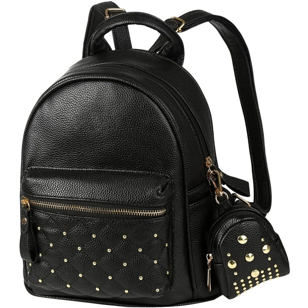 David Jones - Women's Fashion Backpack Purse Small - Ladies Casual Mini Daypack PU Leather - Girl Rucksack Satchel Shoulder Handbag Zipper Pockets - Trendy School Bag City College Teenager - Black