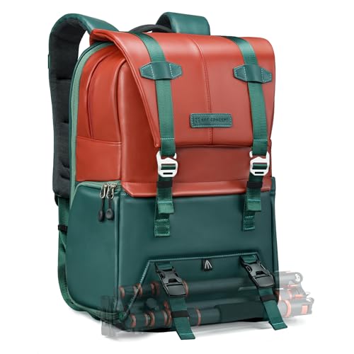 K&F Concept 20L Camera Backpack for Photographers Large Capacity PU Leather Camera Bags with Raincover, 15.6 Inch Laptop Compartment for Camera Drone Bags